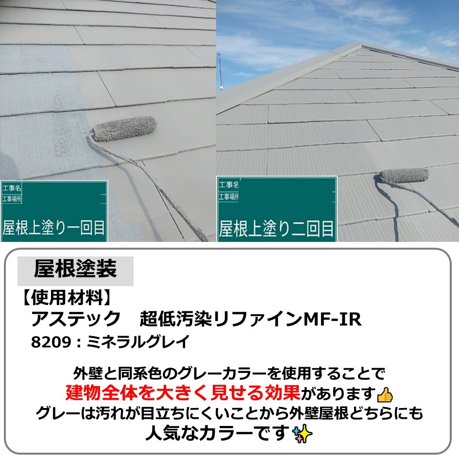グレーは汚れが目立ちにくいことから外壁屋根どちらにも人気なカラーです✨
