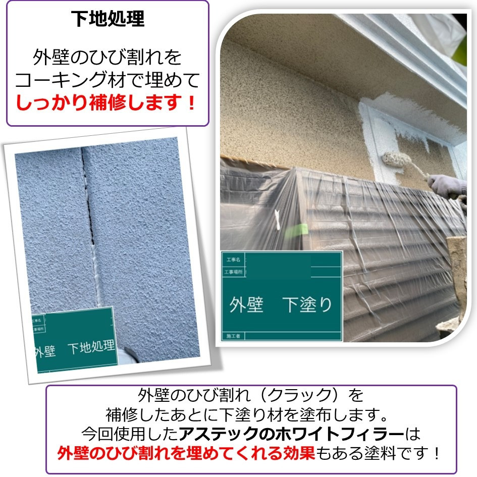 しっかりと下地処理をして、ひび割れを補修してから