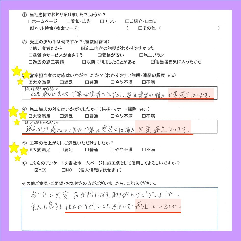 アンケート(口コミ)を頂きましたのでご紹介させて頂きます!