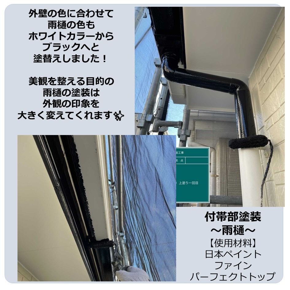 外壁の色に合わせて雨樋の色もホワイトカラーからブラックへと塗替えしました!