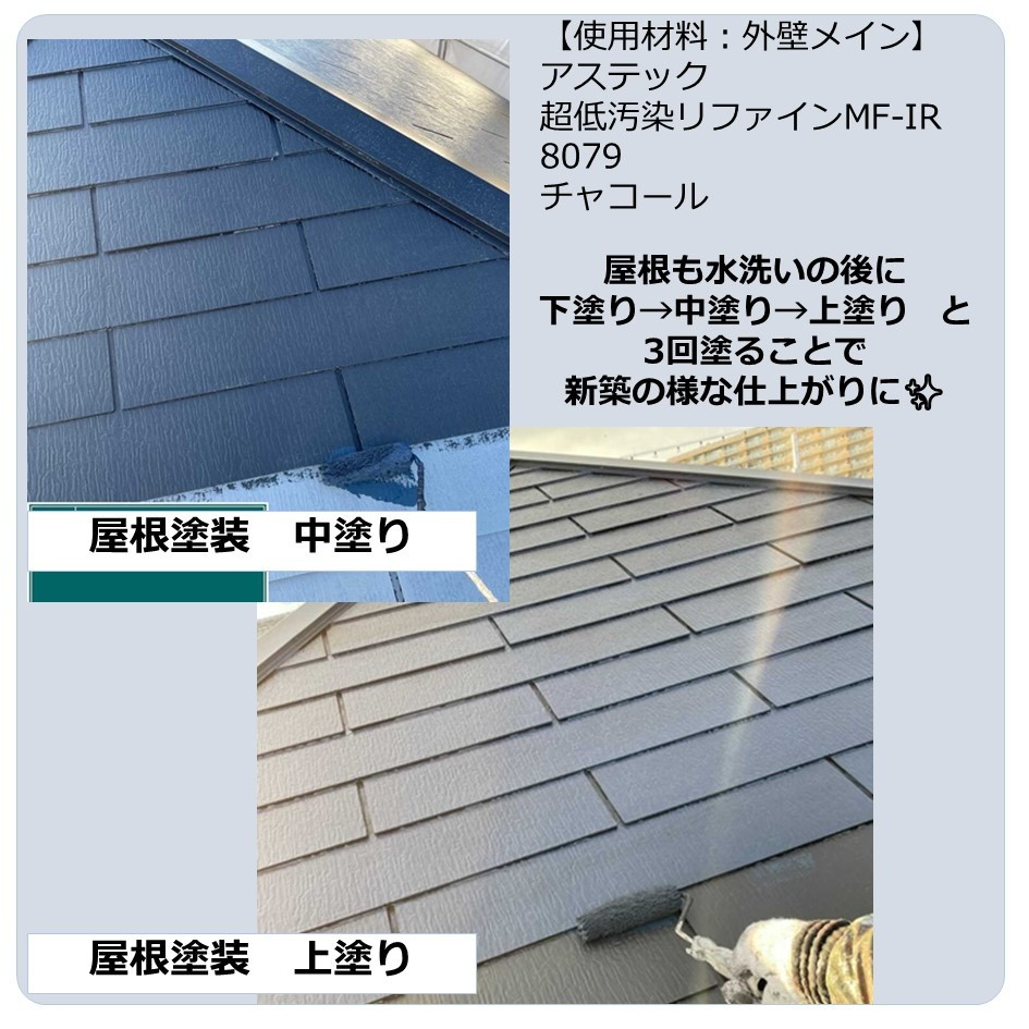 下塗り→中塗り→上塗りと3回塗ることで新築の様な仕上がりに✨