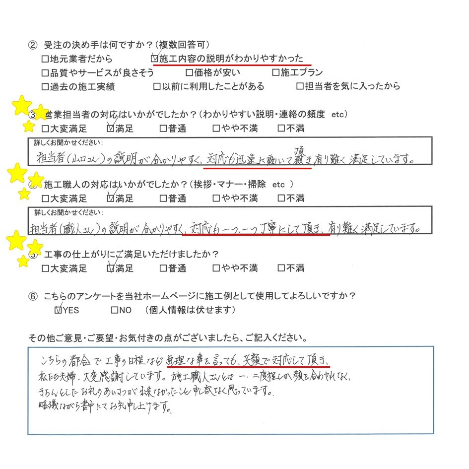 施工主様からアンケート(口コミ)もいただきましたのでご紹介させて頂きます!