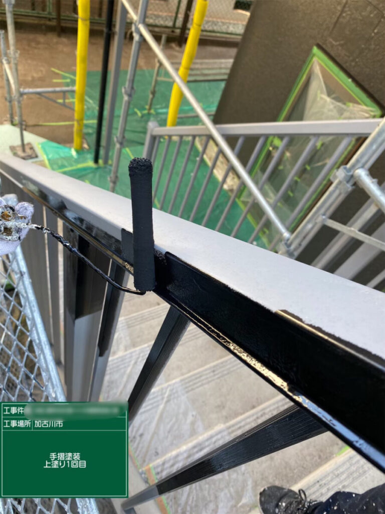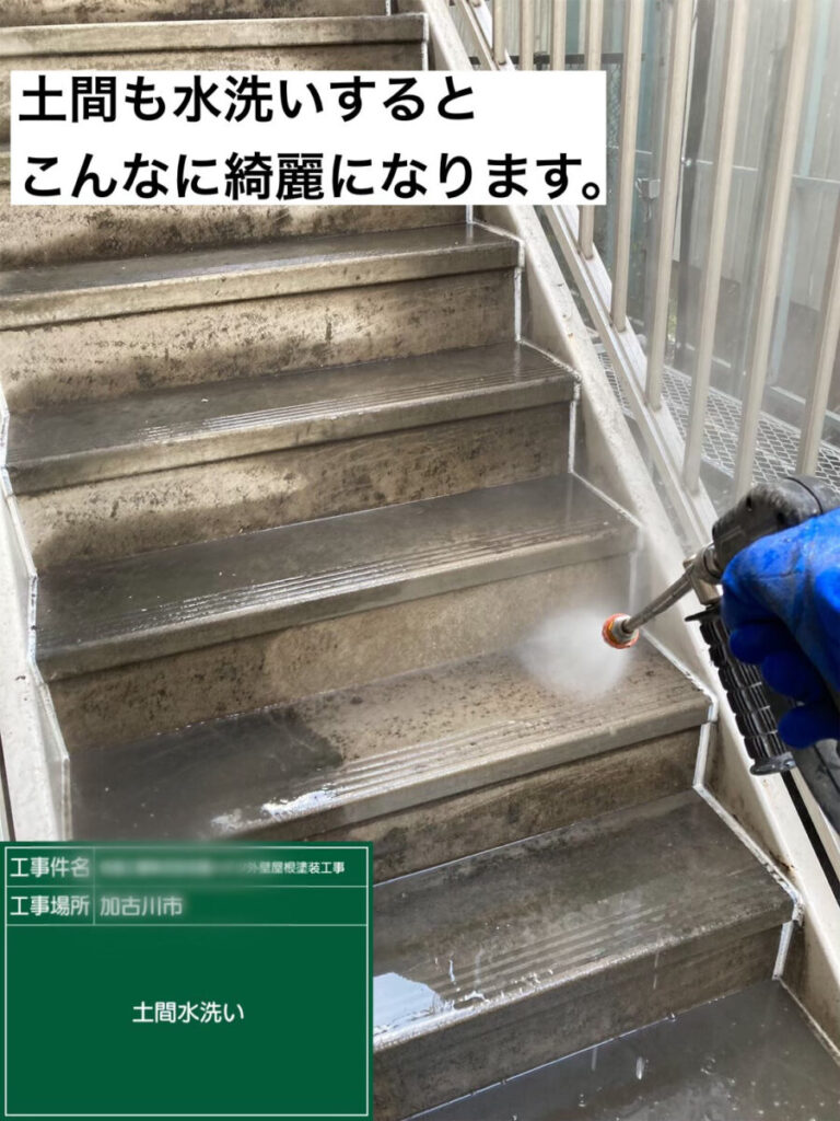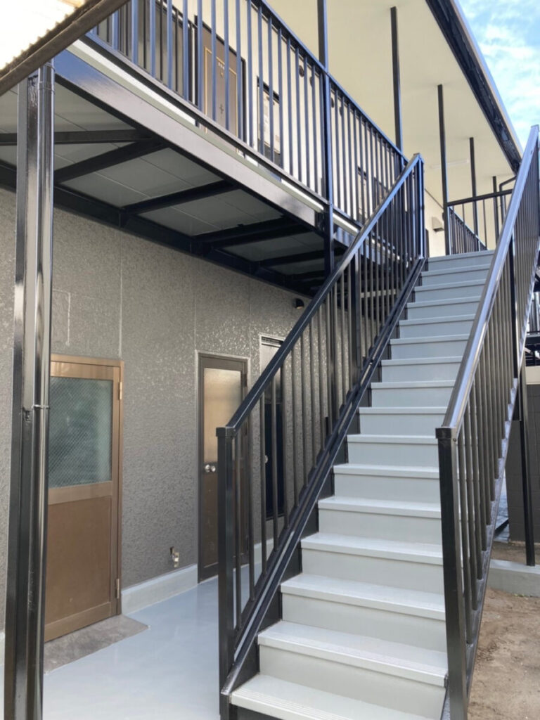今回は外壁・屋根だけでなく、共用通路の土間塗り替え、階段手すり塗り替えもさせていただきました!
