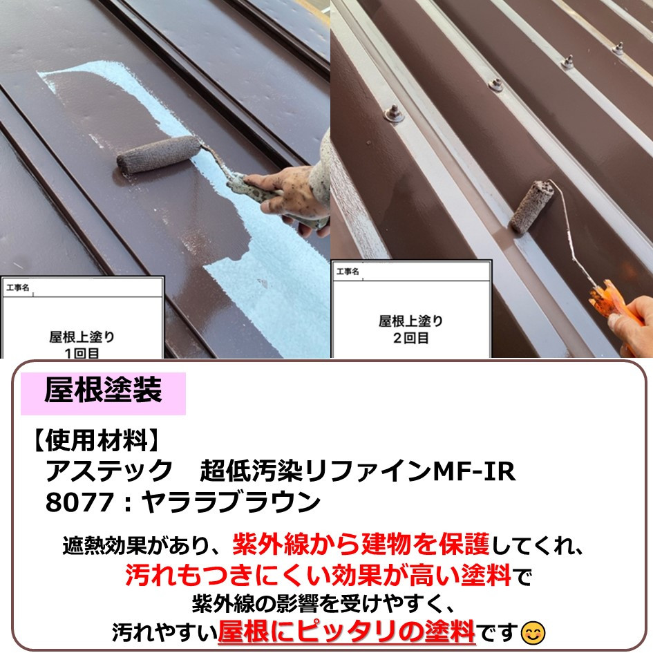 遮熱効果があり、紫外線から建物を保護してくれ、汚れもつきにくい効果が高い塗料で、紫外線の影響を受けやすく、汚れやすい屋根にピッタリの塗料です😊