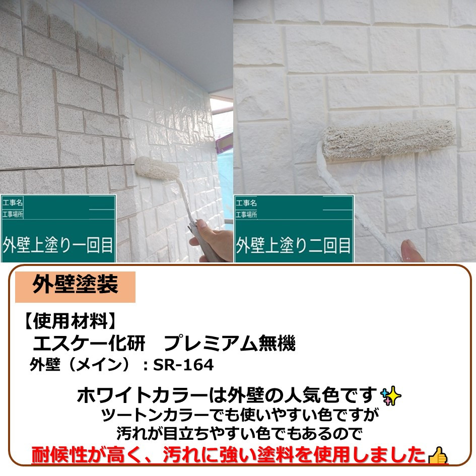 ツートンカラーでも使いやすい色ですが汚れが目立ちやすい色でもあるので耐候性が高く、汚れに強い塗料を使用しました👍️