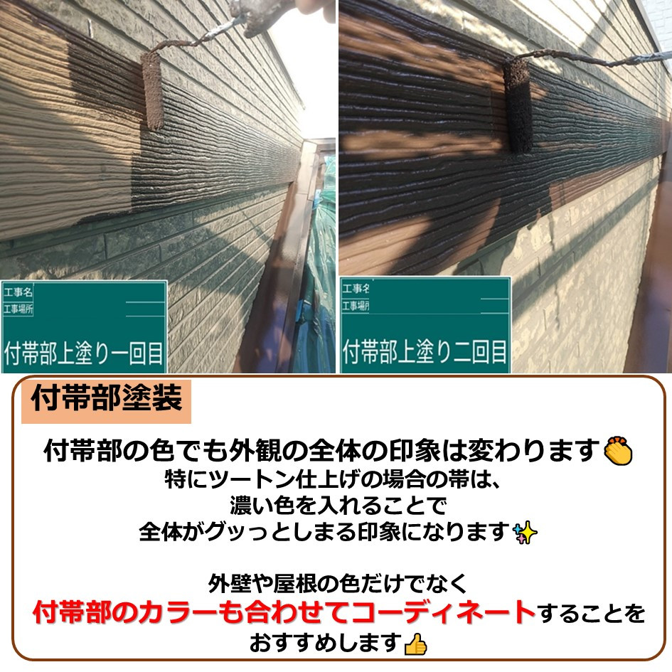 外壁や屋根の色だけでなく付帯部のカラーも合わせてコーディネートすることをおすすめします👍️