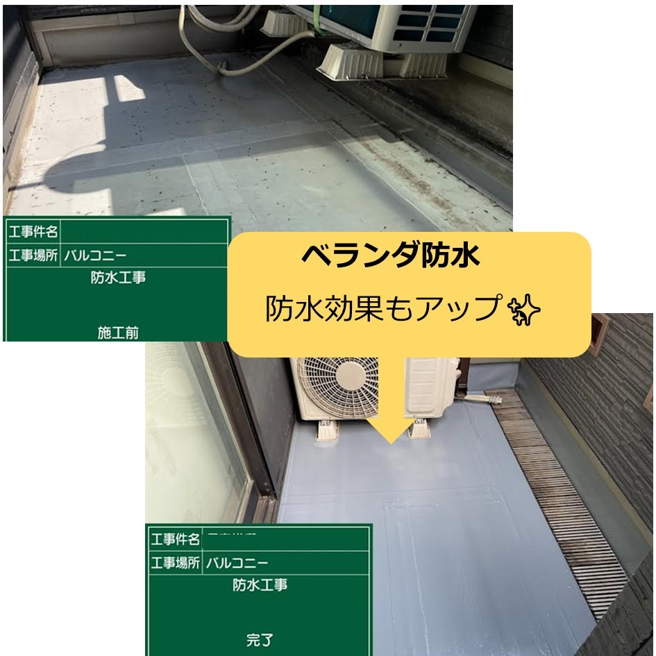 また、10年が塗りかえ目安といわれているベランダの防水工事もお手伝いさせていただきました!