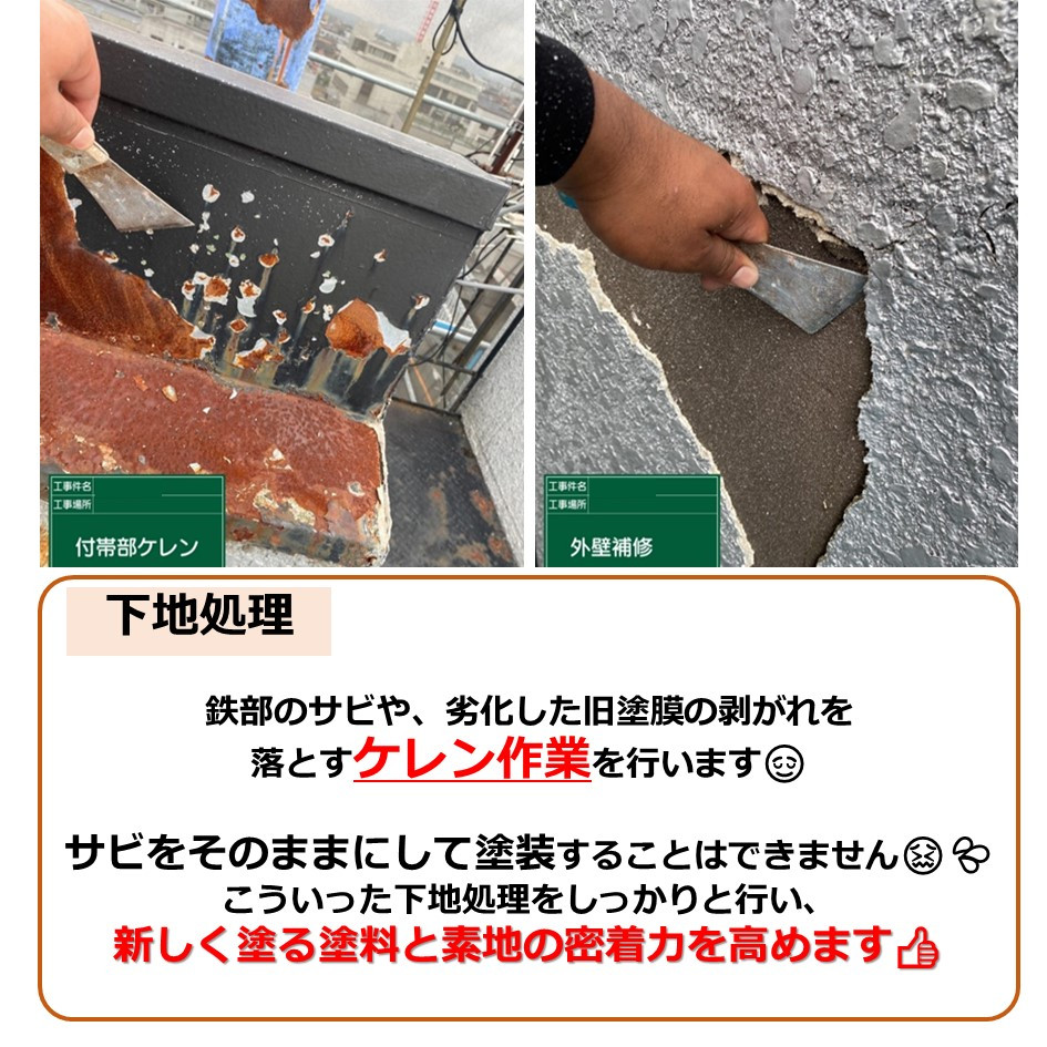 鉄部のサビや、劣化した旧塗膜の剥がれを落とす作業のことを指します!