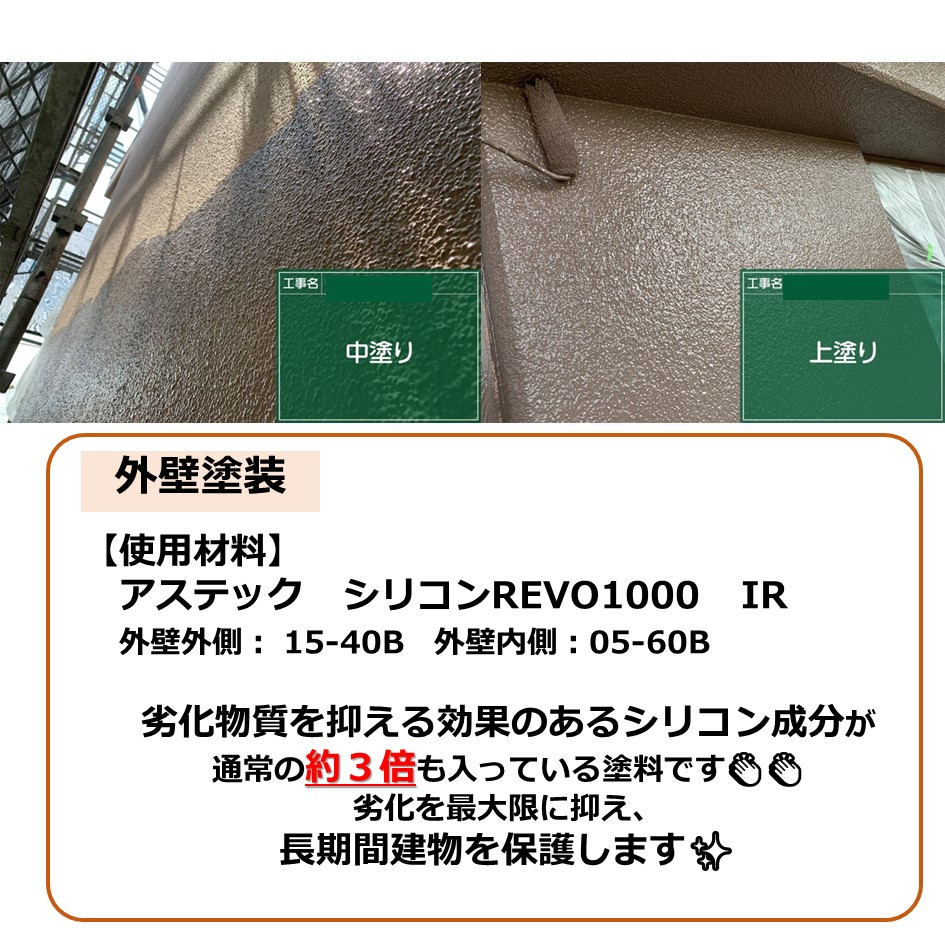 劣化物質を抑える効果のあるシリコン成分が通常の約3倍も入っている塗料です👏👏