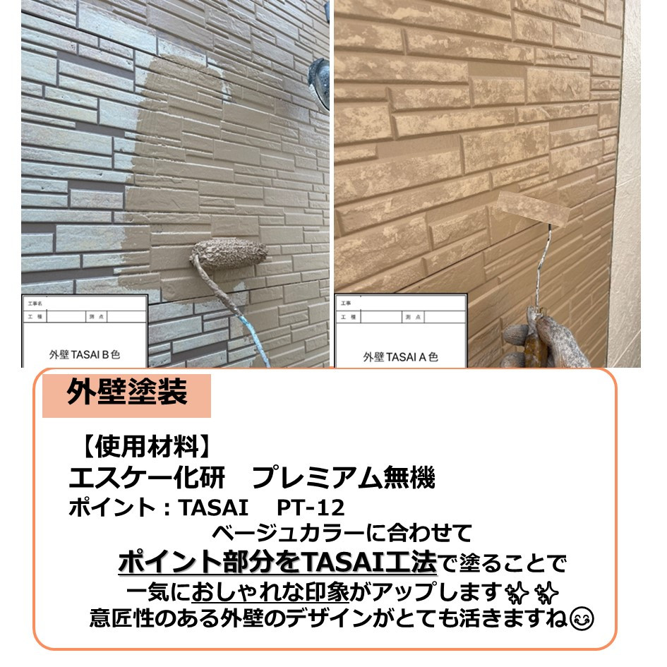ベージュは控えめなお色ですが、ポイント部分にTASAI工法で塗ることで一気におしゃれな印象がアップします✨✨