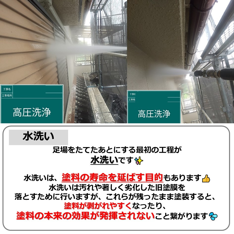 足場をたてたあとにする最初の工程が水洗いです✨