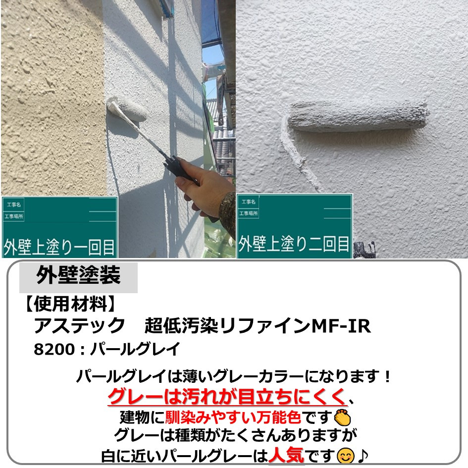 グレーは汚れが目立ちにくく、建物に馴染みやすい万能色です👏