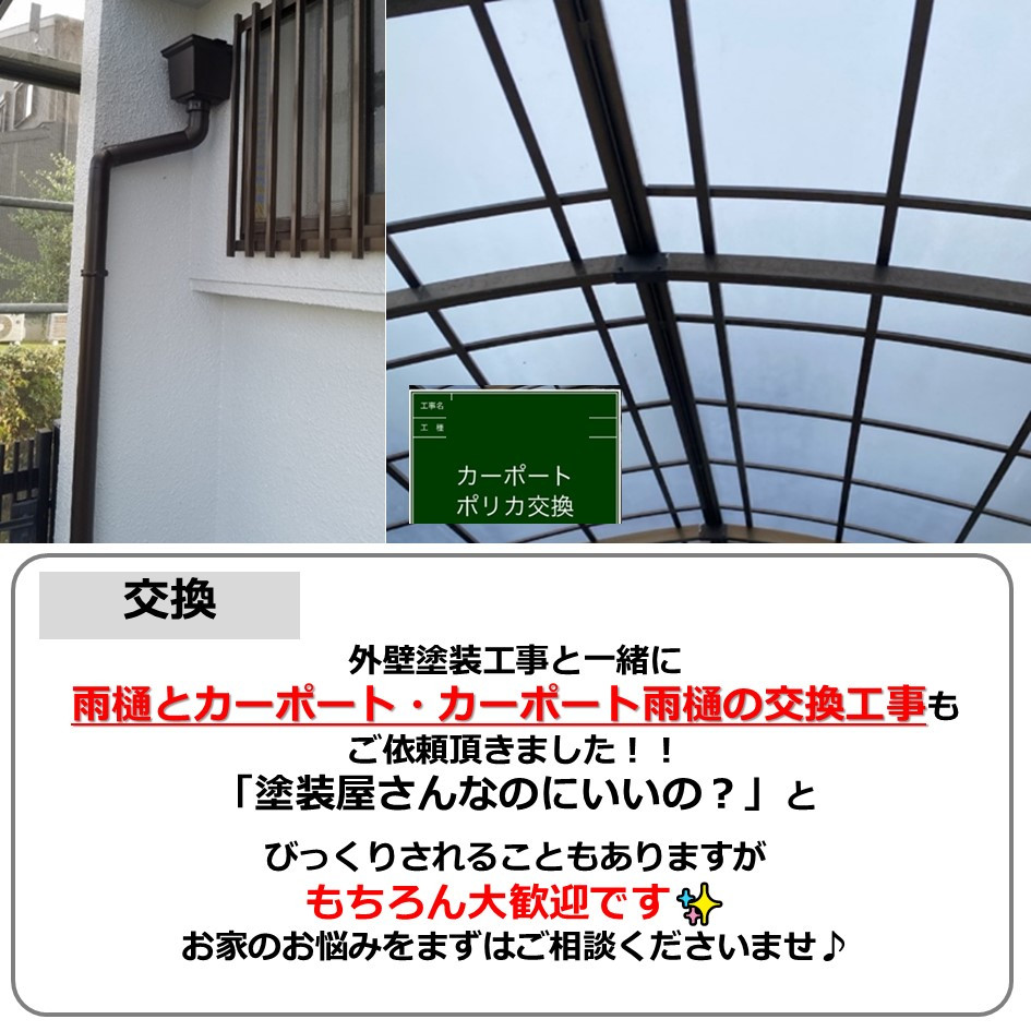 外壁塗装工事と一緒に雨樋・カーポート・カーポート雨樋の交換工事もご依頼頂きました!!