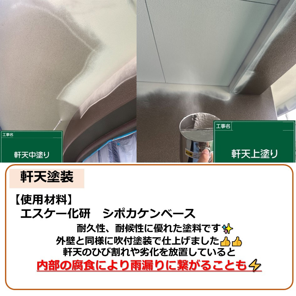 軒天に使用したのは、耐久性、耐候性に優れた塗料です✨