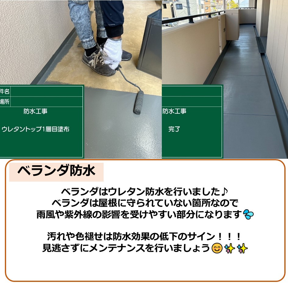 ベランダはウレタン防水を行いました♪