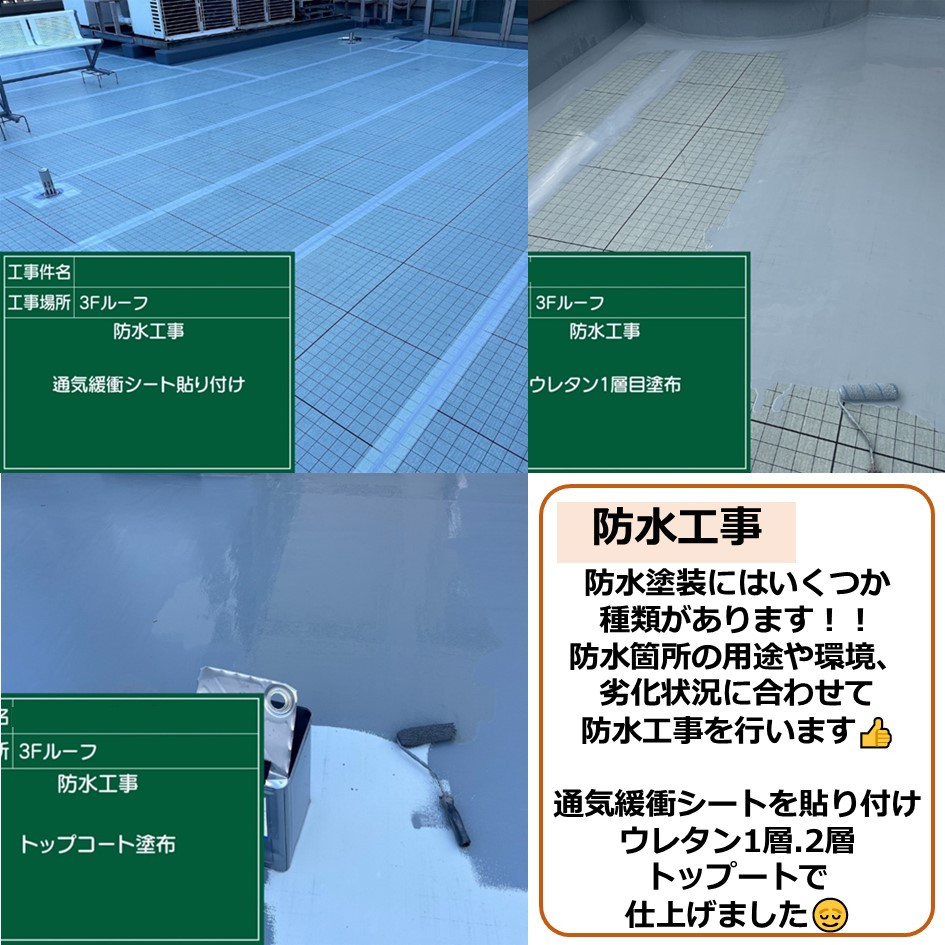 防水箇所の用途や環境、劣化状況に合わせて防水工事を行います👍️