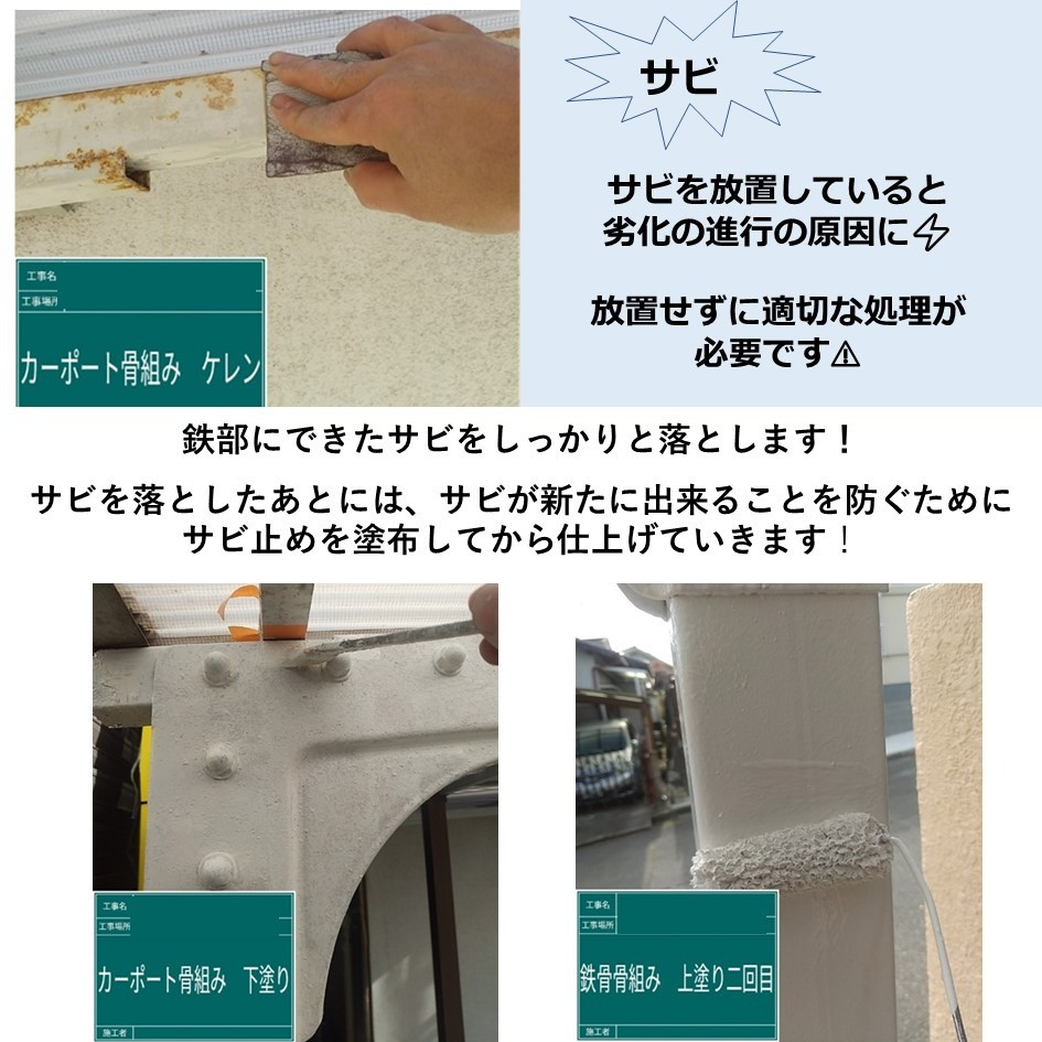 この工程の後に、サビ止めを塗布することで塗料の効果を最大限に活かすことができます👍
