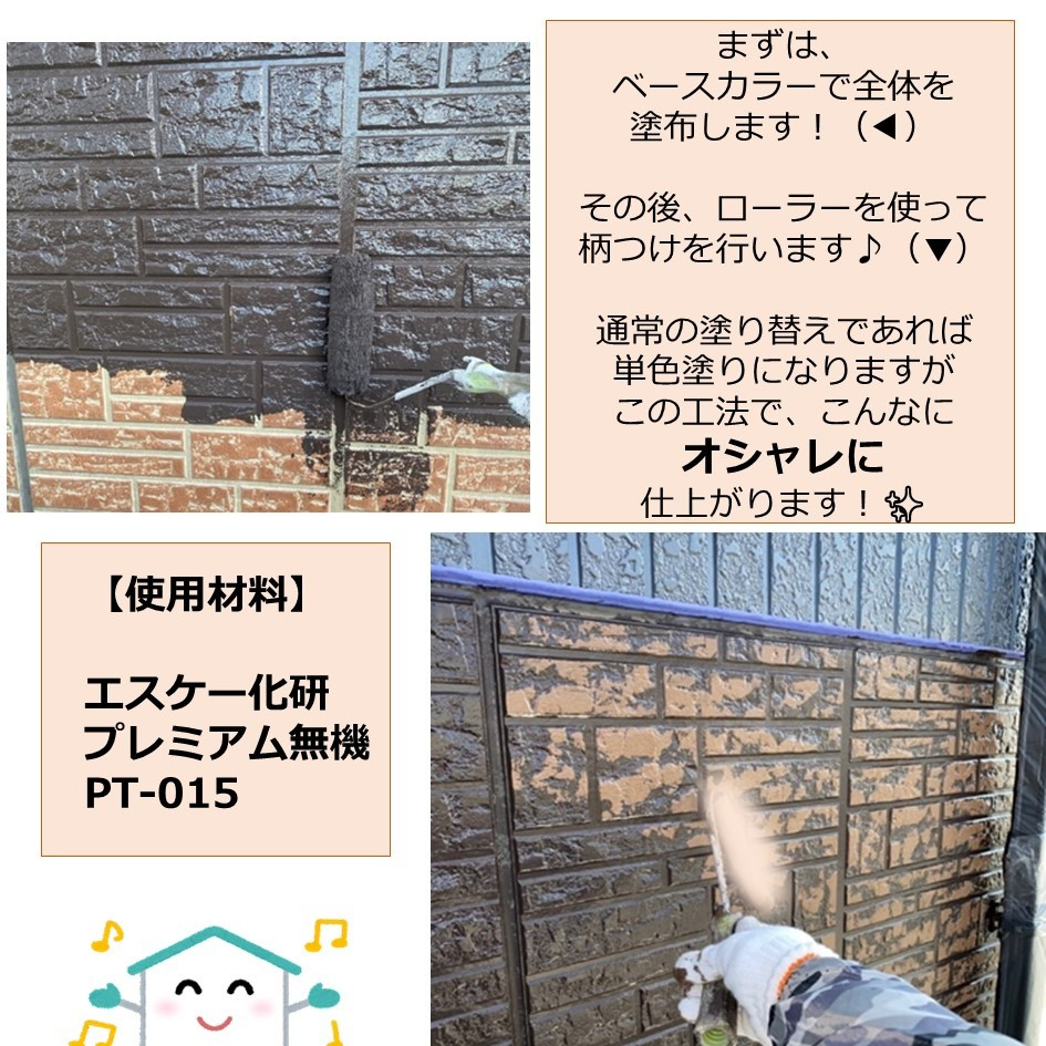 目地が白、ベースはベージュカラーの外壁からブラウンベースの外壁へイメージチェンジ♪