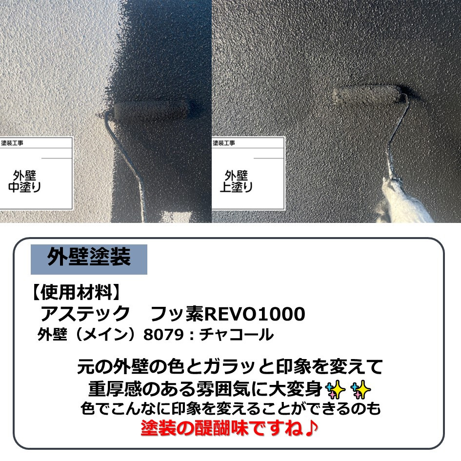元の外壁の色とガラッと印象を変えて重厚感のある雰囲気に大変身✨✨