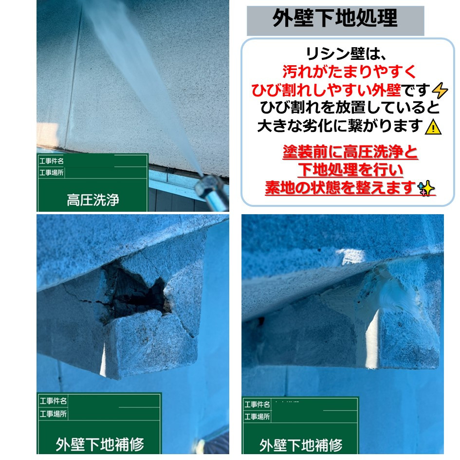 塗装前に高圧洗浄と下地処理を行い素地の状態を整えます✨