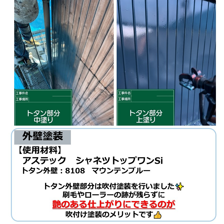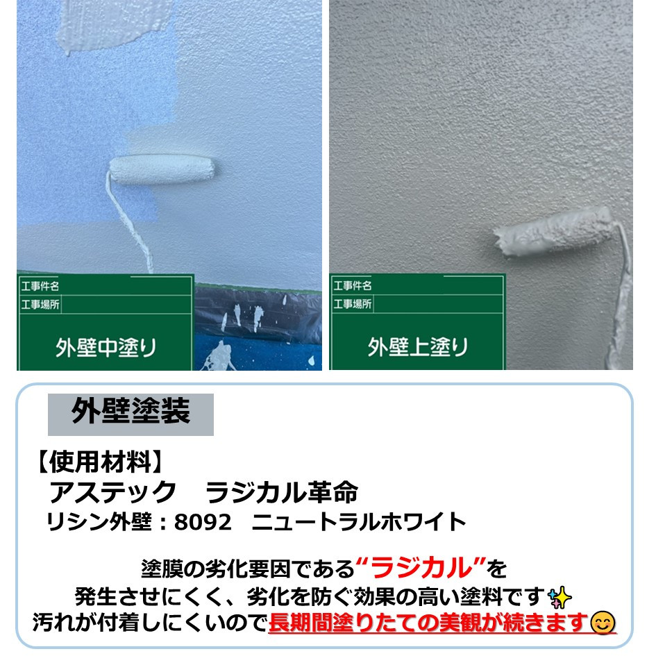 使用したのは塗膜の劣化要因である“ラジカル”を発生させにくく、劣化を防ぐ効果の高い塗料です✨