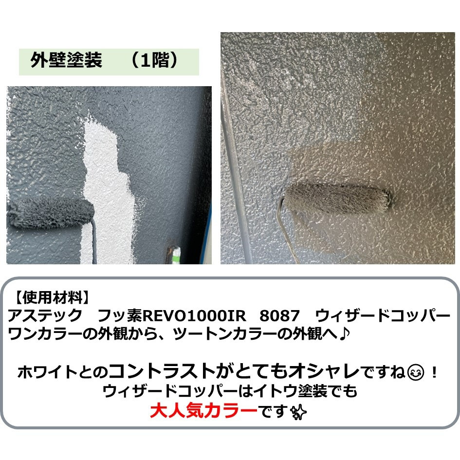 ホワイトのワントーンカラーのお家から、1階と2階の塗り分けのツートンカラーのお家へ大変身🏡