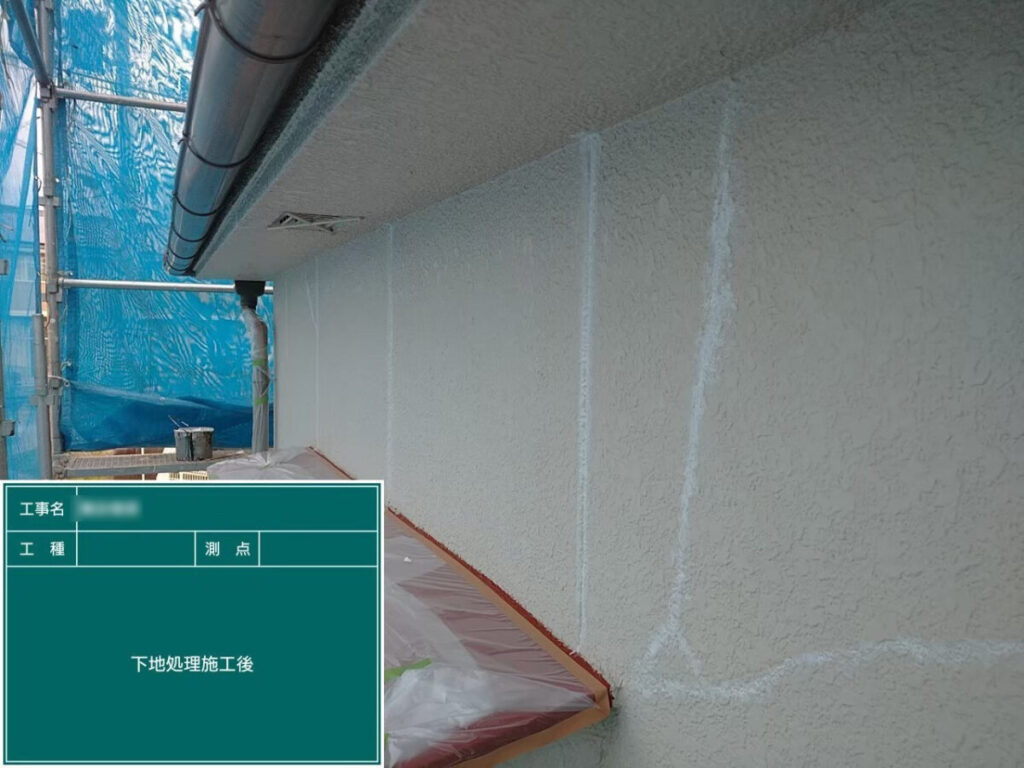 外壁にひび割れしている(クラック)箇所があったため、きちんとクラック処理を行いました。