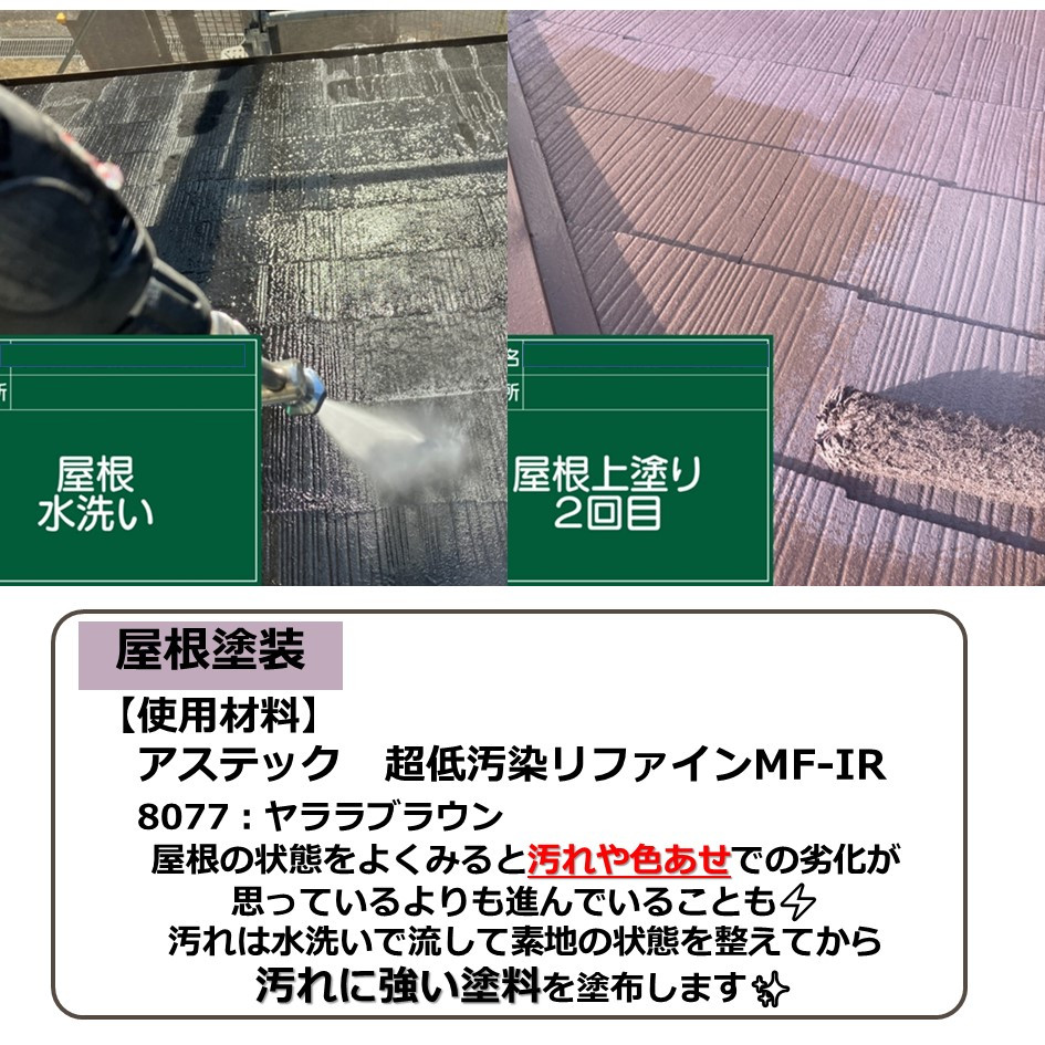 屋根で使用したアステックの商品は、遮熱効果も高いため屋根にぴったりの塗料です♪