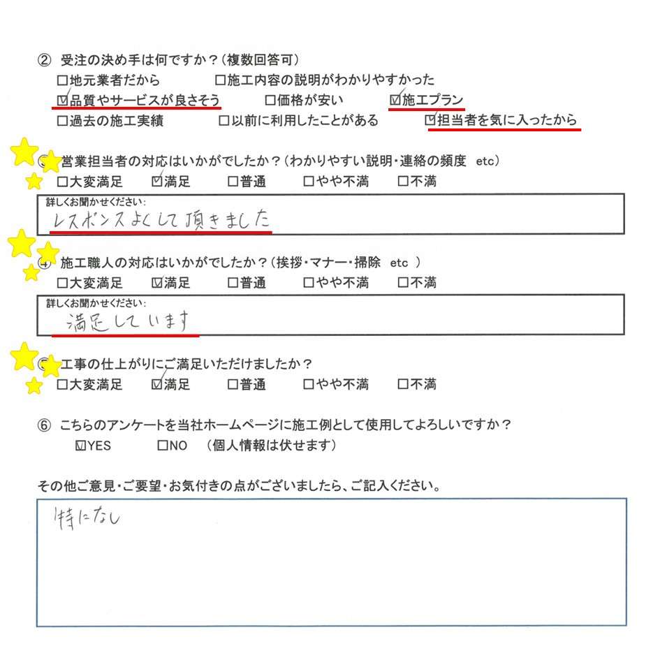 お客様からもアンケートをいただき、ご満足いただけ大変光栄です✨