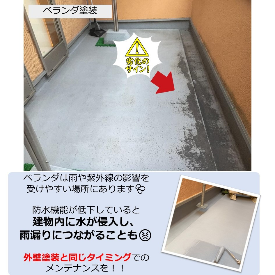 ベランダは雨や紫外線の影響を受けやすい場所にあります💦