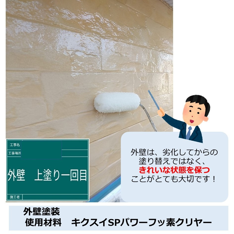 キクスイSPパワーフッ素クリヤーの塗料は、表面保護・光沢の復活ができる塗料です🏡