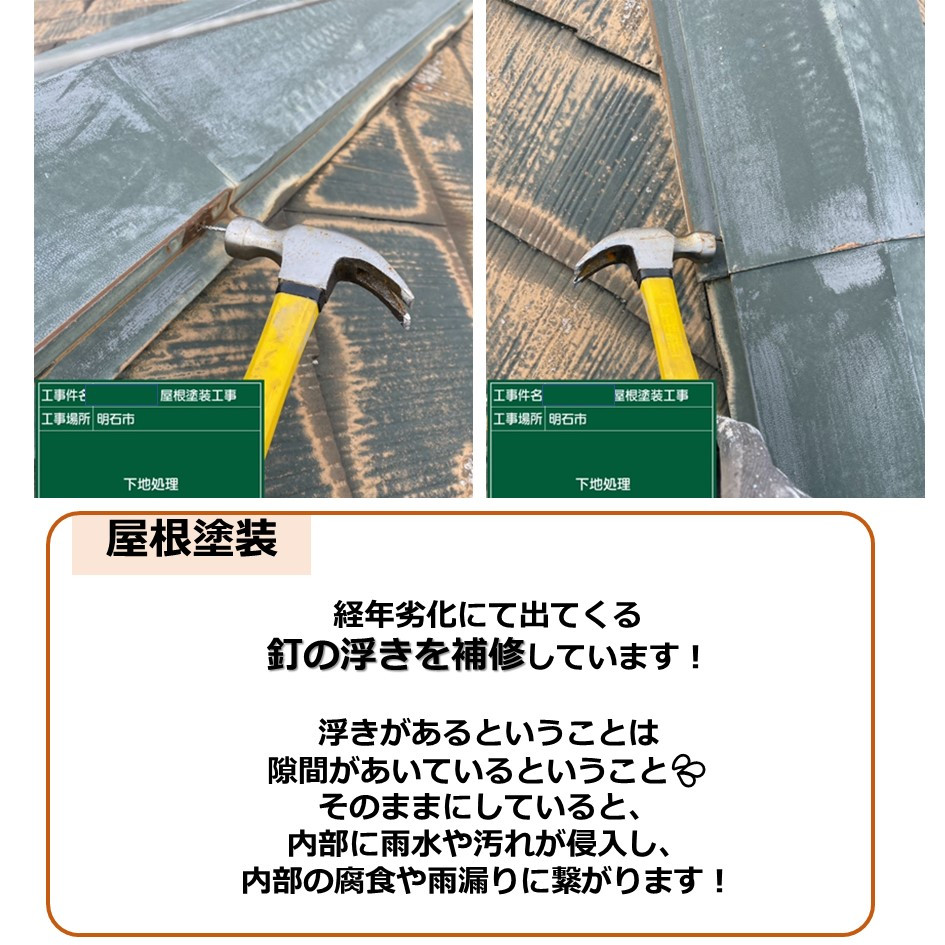 経年劣化にて出てくる釘の浮きを補修しています!
