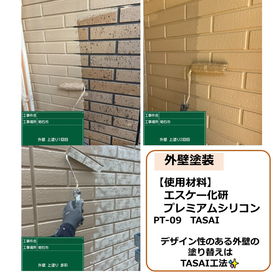 兵庫県明石市で「エスケー化研 プレミアムシリコン」を使用した施工物件の紹介です。