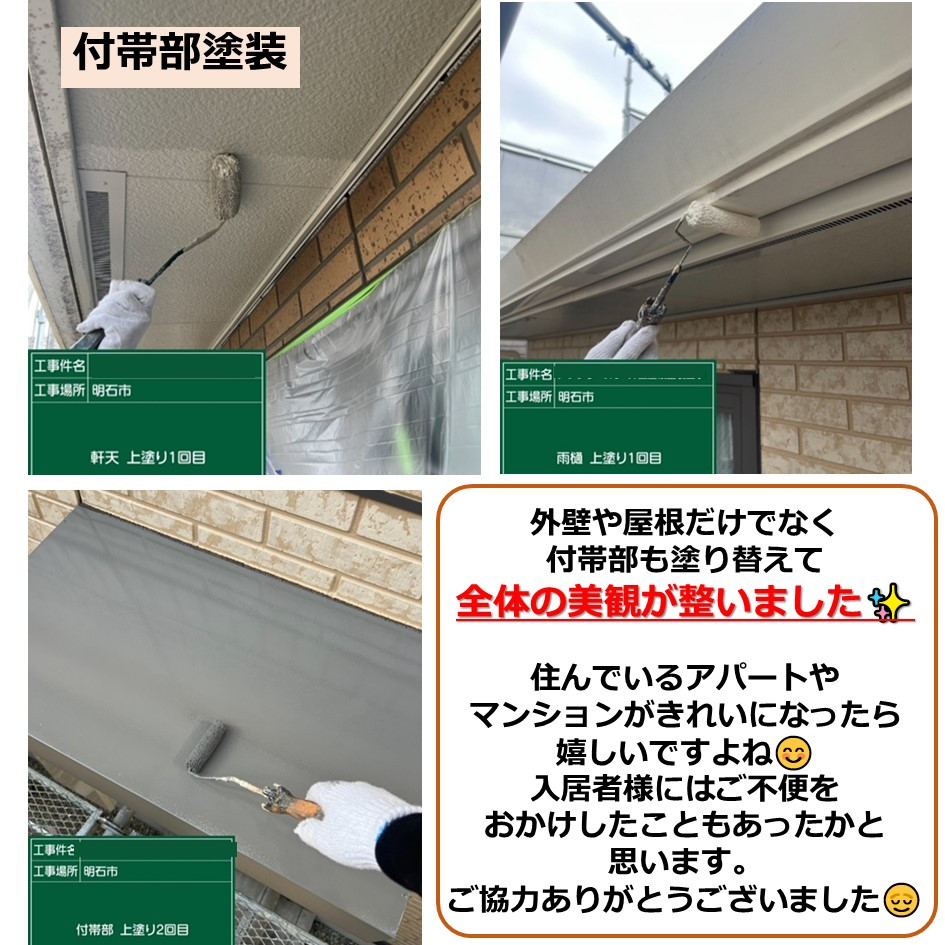 外壁や屋根だけでなく付帯部も塗り替えて全体の美観が整いました✨