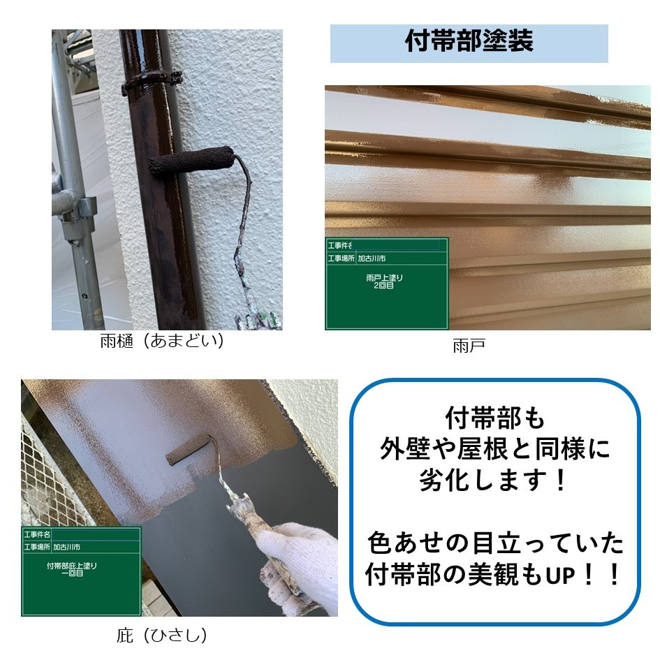 現状色と同じお色での塗り替えでしたが、外壁・屋根だけでなく付帯部(雨樋・雨戸・庇など)の色あせや汚れも
