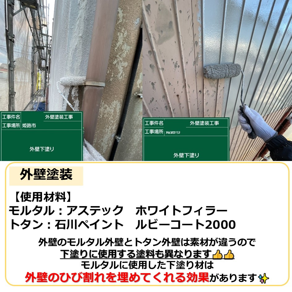 モルタルに使用した下塗り材は外壁のひび割れを埋めてくれる効果があります✨