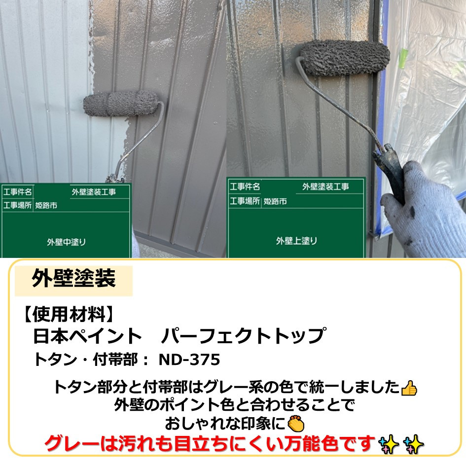 トタン部分と付帯部はグレー系の色で統一しました👍️