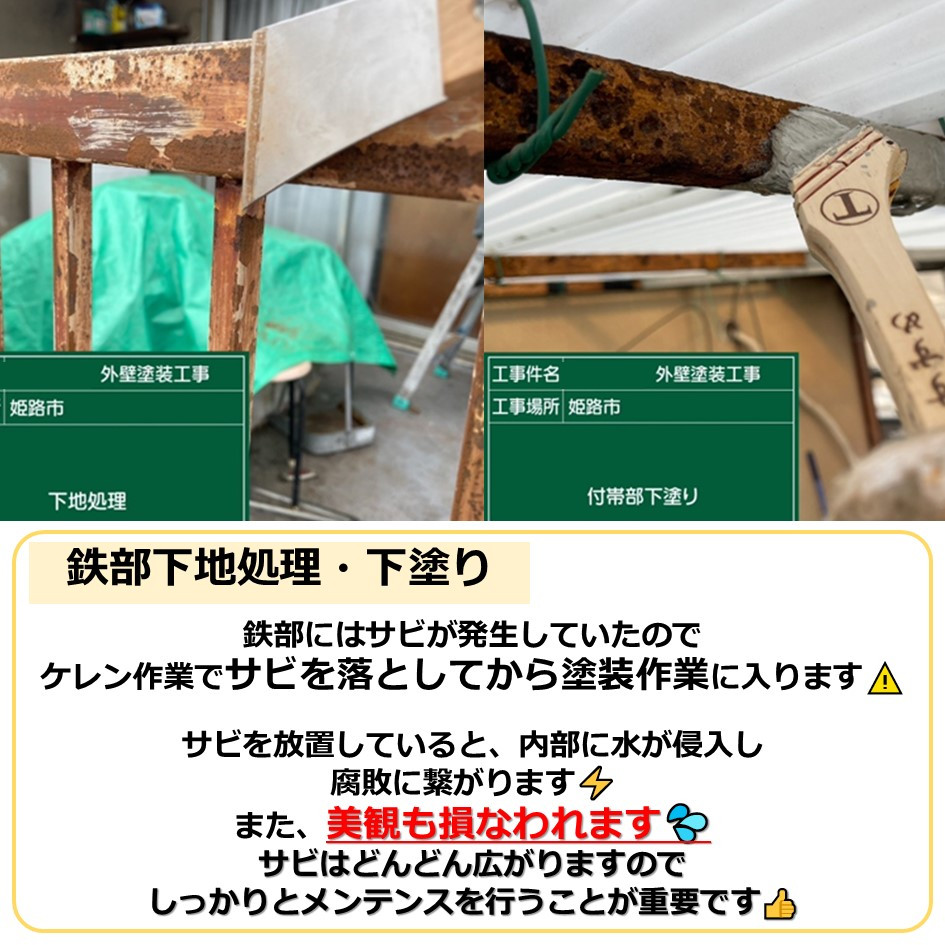 鉄部にはサビが発生していたのでケレン作業でサビを落としてから塗装作業に入ります⚠️