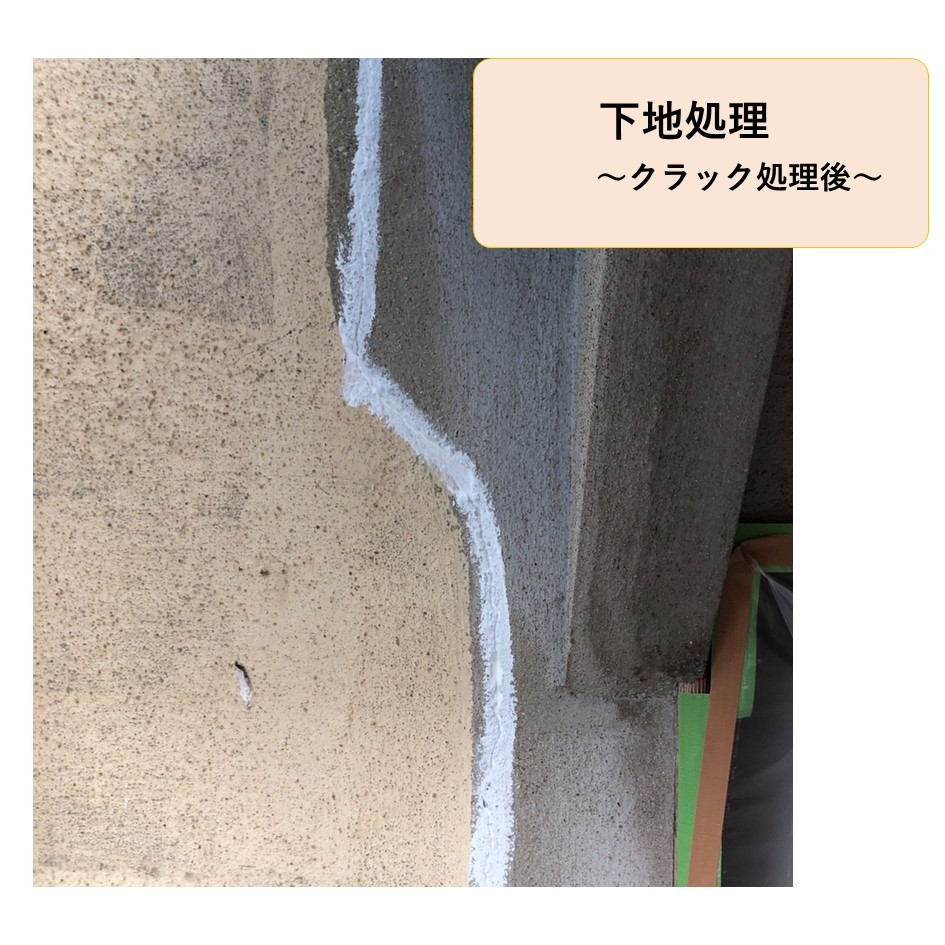 下地処理のコーキングと、クラック処理も行いました!