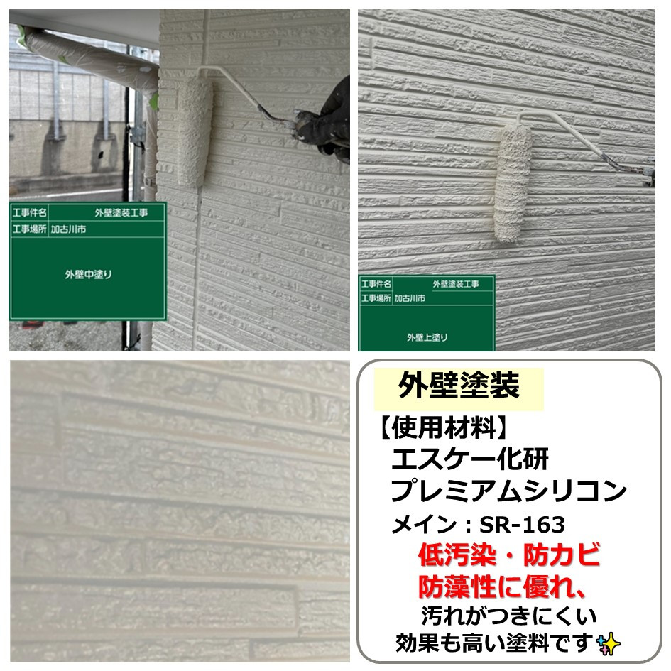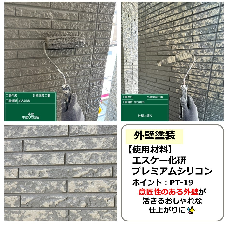 兵庫県加古川市で「エスケー化研 プレミアムシリコン」を使用した施工物件の紹介です。