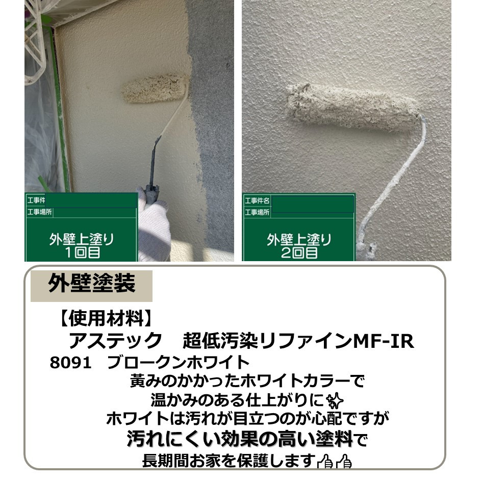 ホワイトは汚れが目立つのが心配ですが汚れにくい効果の高い塗料で長期間お家を保護します👍👍