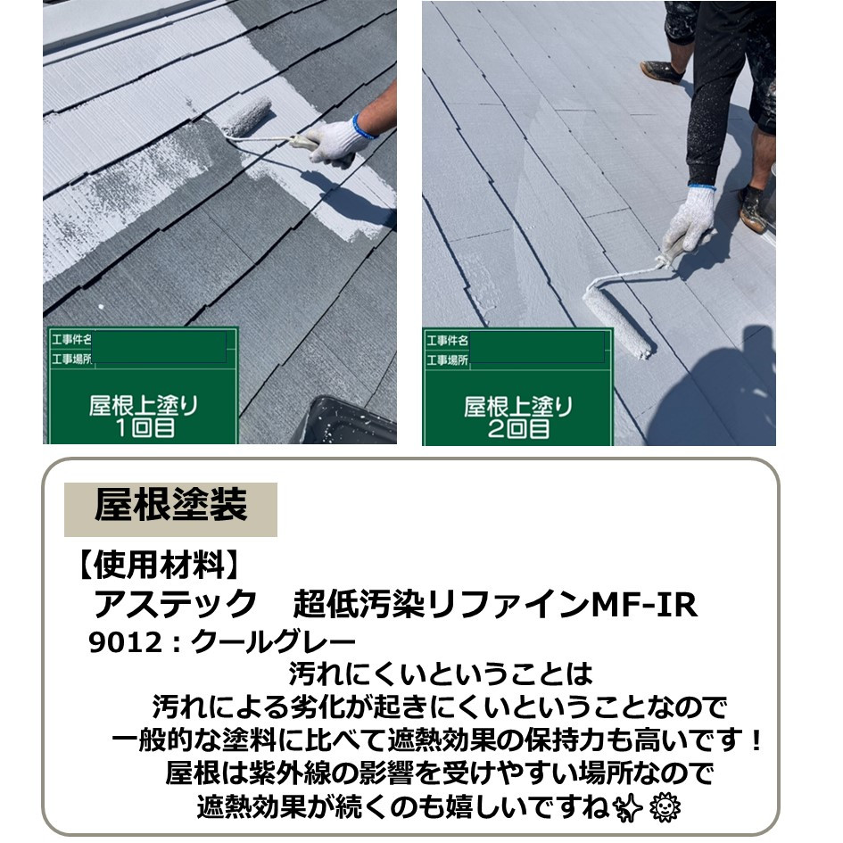 屋根にも外壁と同様に「アステック 超低汚染リファインMF-IR」を使用しました😊