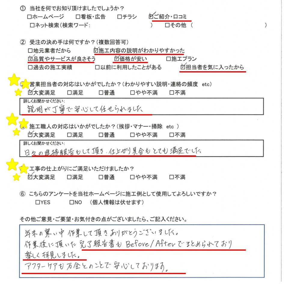 お客様から嬉しいアンケートをご記入頂きましたのでご紹介させて頂きます!