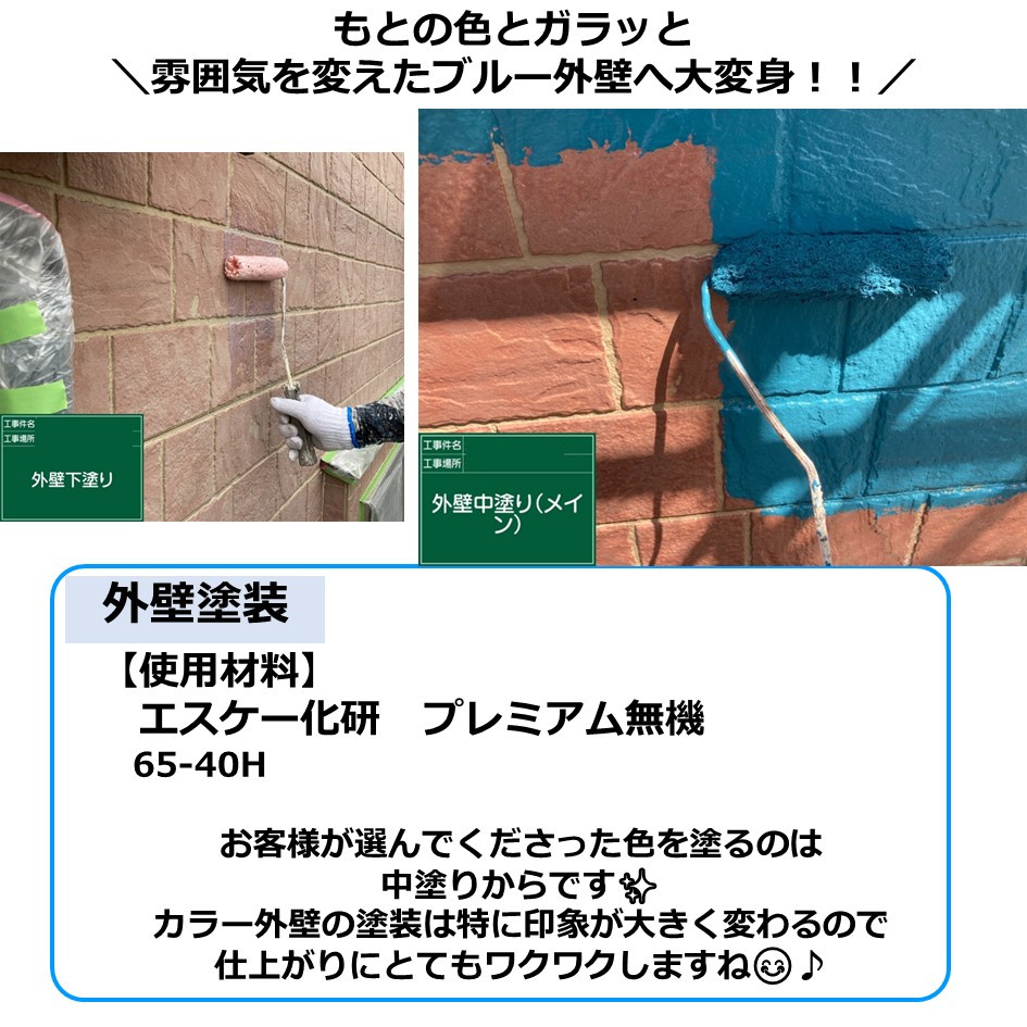 カラー外壁の塗装は特に印象が大きく変わるので、仕上がりにとてもワクワクしますね😊♪