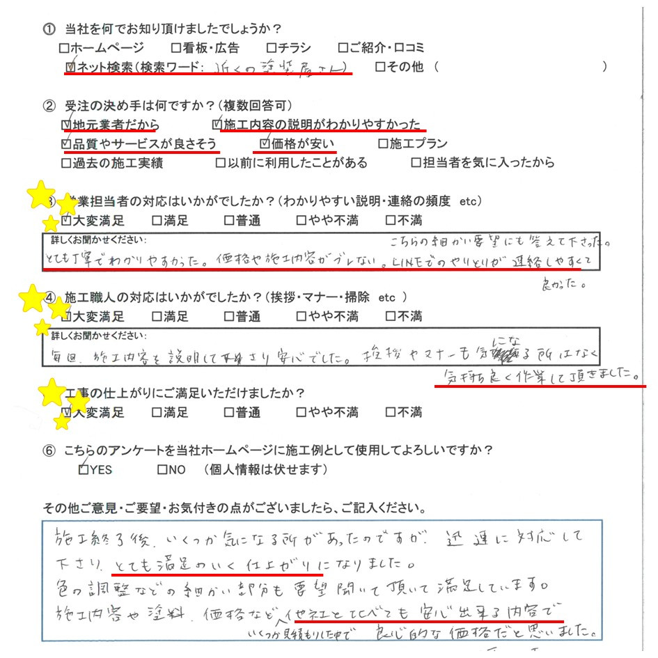 お客様からも、高評価のアンケートも頂戴し、大変光栄です😊