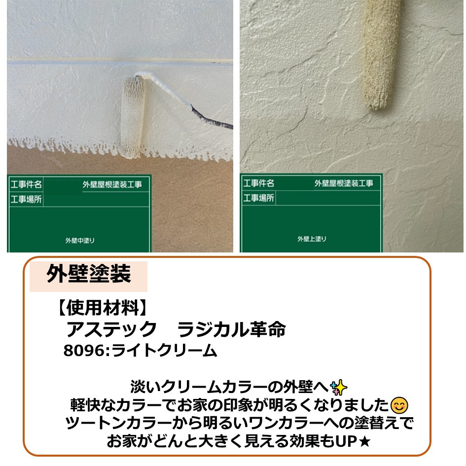 ツートンカラーから明るいワンカラーへの塗替えでお家がどん!と大きく見える効果もUP★
