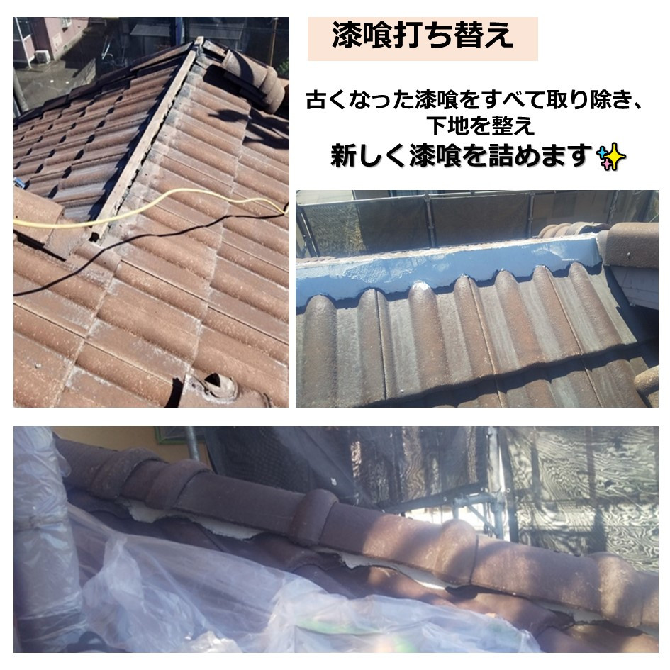 漆喰の打ち替え工事では、古くなった漆喰をすべて取り除き、下地を整え新しく漆喰を詰めます✨