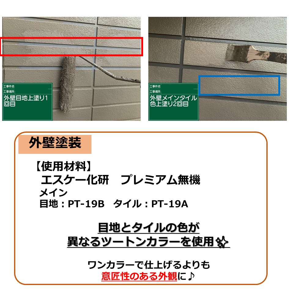 エスケー化研 プレミアム無機TASAI工法はA材・B材と2色の色を使用して