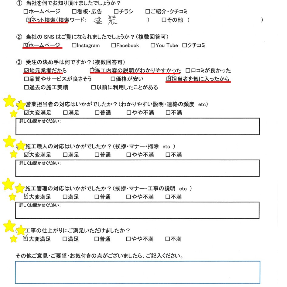 お客様にも大満足のアンケートをご記入頂きました!