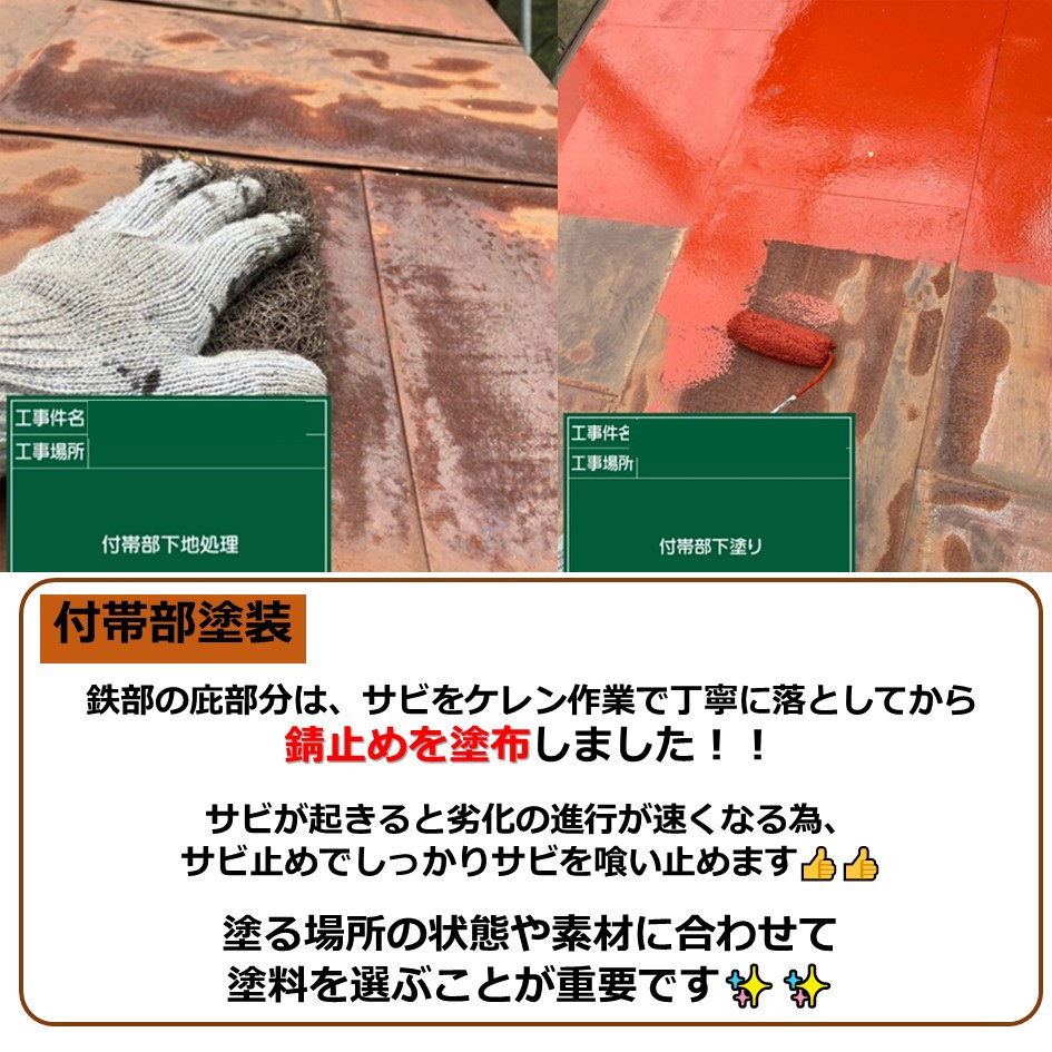 サビが起きると劣化の進行が速くなる為、サビ止めでしっかりサビを喰い止めます👍️